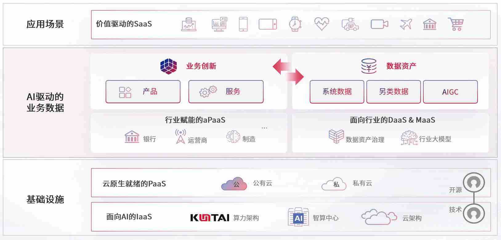 数字时代,,,,围绕企业数字化转型的关键要素,,,,人生就是搏数码开创性的提出数云融合战略和技术体系框架,,,着力在云原生、、、数字原生、、AI原生和信创产业上架构产品和服务能力,,,,为处在不同数字化转型阶段的快消零售、、、、汽车、、、、金融、、、、医疗、、、政企、、、教育、、、、运营商等行业客户提供泛在的敏捷IT能力和融合的数据驱动能力,,构建跨界融合创新的数字业务场景和新业务模式,,,,助力企业级客户建立面向未来的核心能力和竞争优势,,全面推动社会的数字化、、智能化转型升级。。