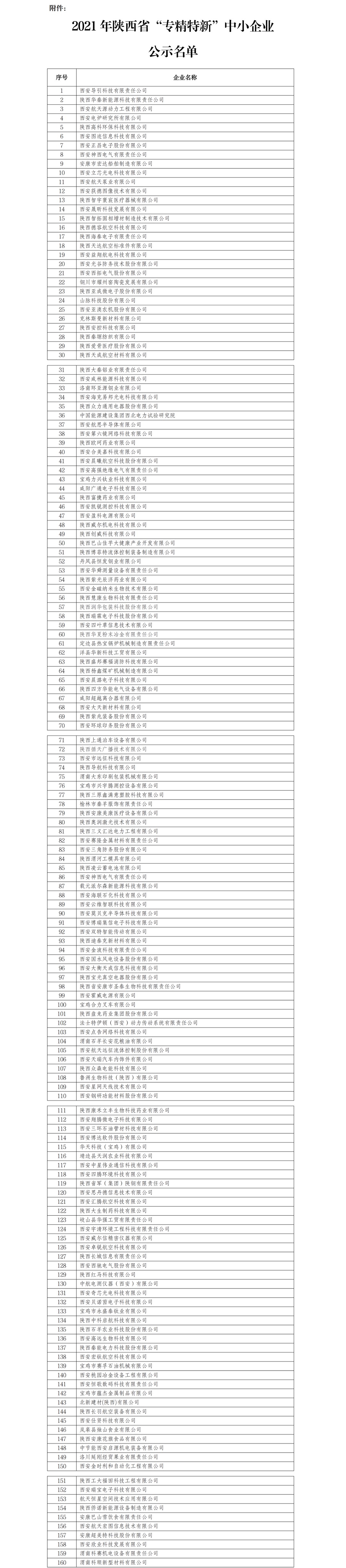 附件:2021年陕西省“专精特新”中小企业公示名单