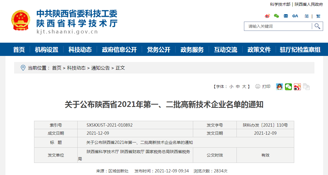 根据全国高新技术企业认定管理工作领导小组办公室《关于陕西省2021年第一批备案高新技术企业名单的函》(国科火字〔2021〕158号)、、、《关于陕西省2021年第二批备案高新技术企业名单的函》(国科火字〔2021〕181号),,,现将陕西省2021年第一、、、、二批高新技术企业予以公布。。。。