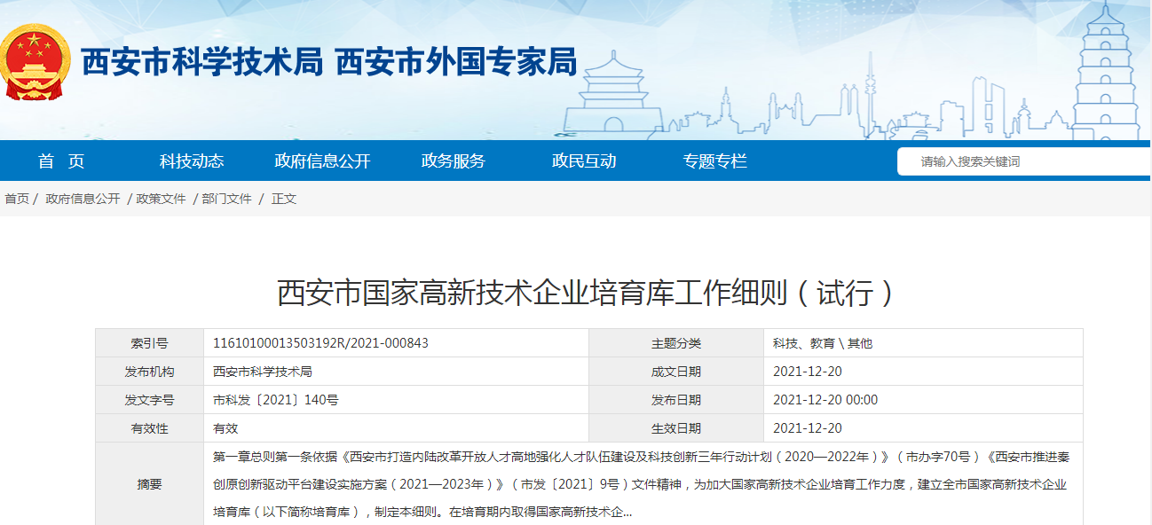 第一条 依据《西安市打造内陆改革开放人才高地强化人才队伍建设及科技创新三年行动计划(2020—2022年)》(市办字70号)《西安市推进秦创原创新驱动平台建设实施方案(2021—2023年)》(市发〔2021〕9号)文件精神,,,为加大国家高新技术企业培育工作力度,,建立全市国家高新技术企业培育库(以下简称培育库),,,制定本细则。。